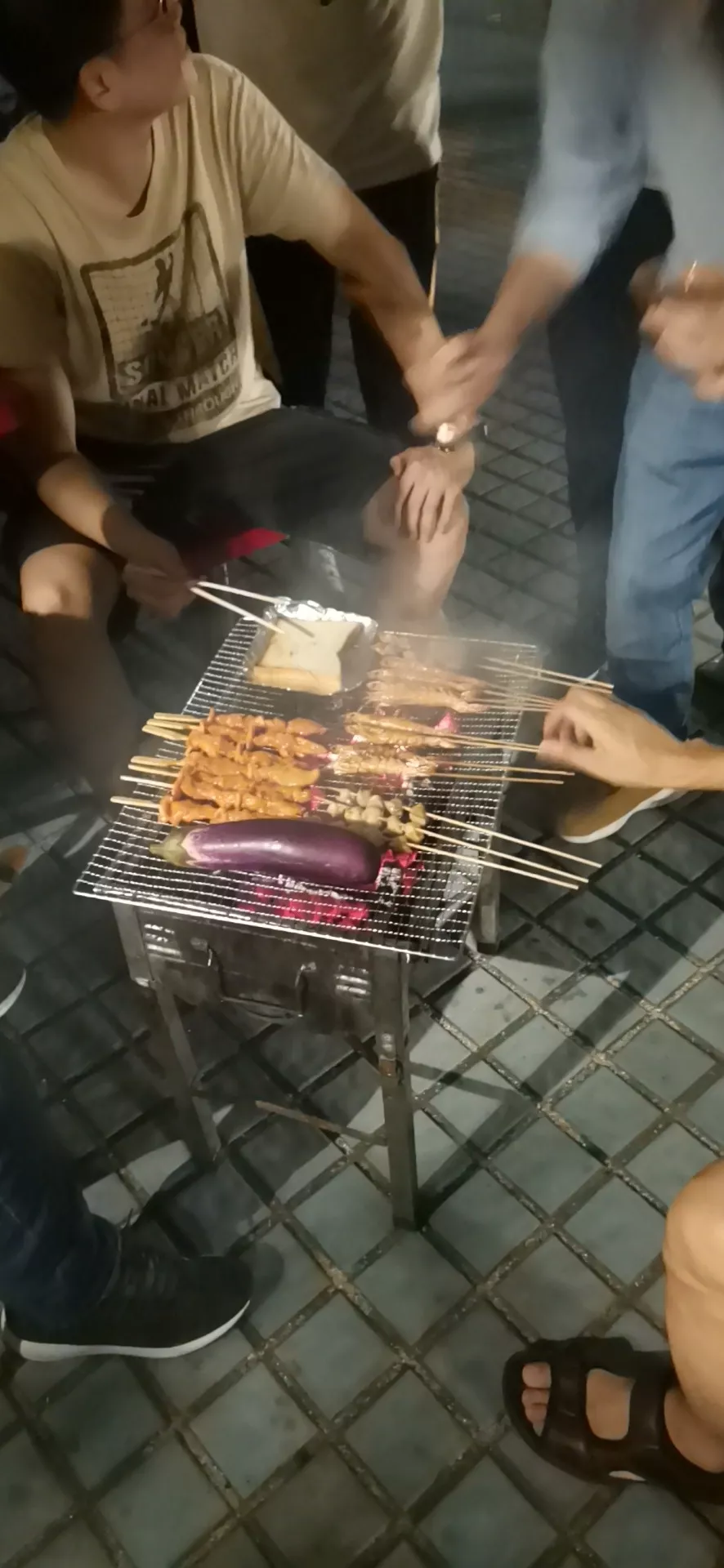 暮色降臨,露天KTV和自助燒烤開始。