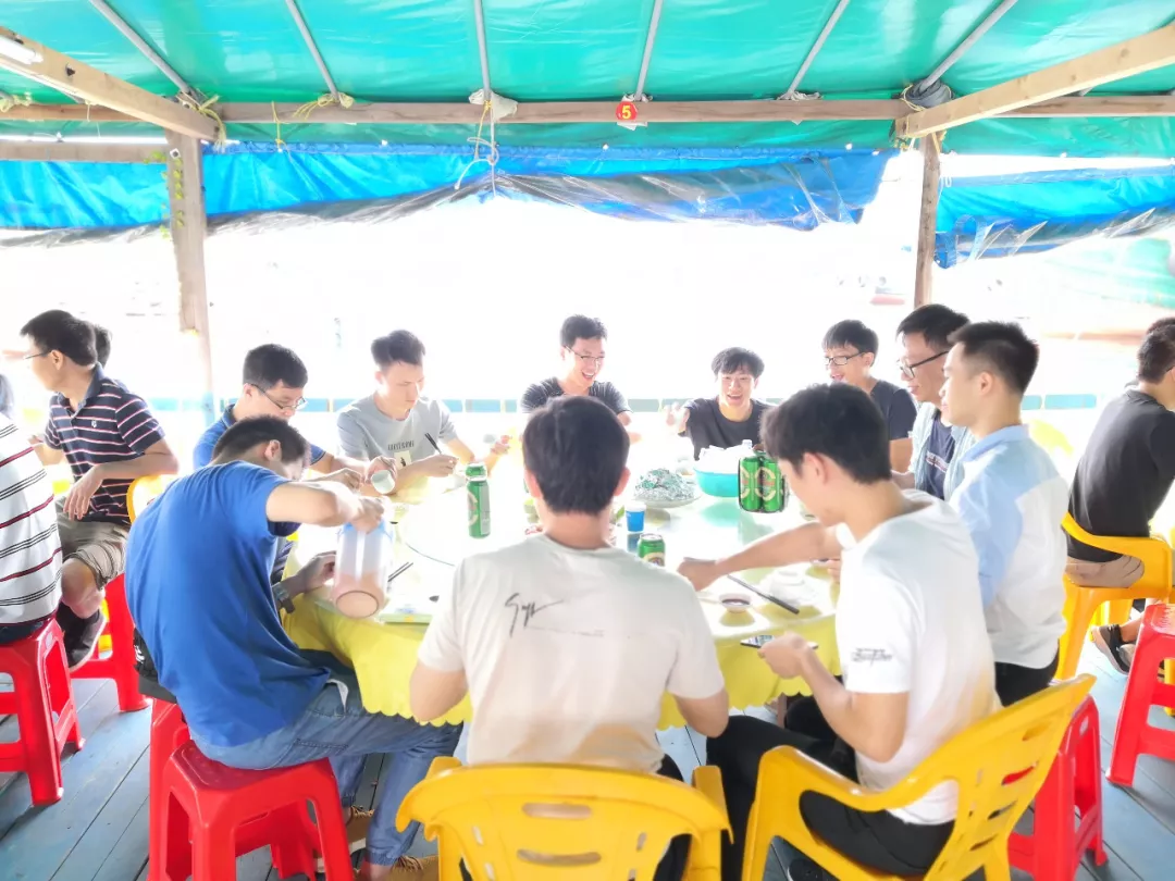 第二天來到大海中的魚排上,一邊享受海浪的按摩一邊享用豐盛的美食。興致高的同事免不了小酌兩杯,指點江山,激昂文字,透露著強大無比的自信,背后是超群絕倫的實力。